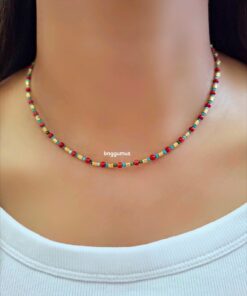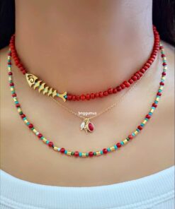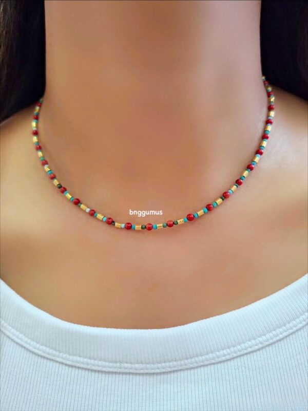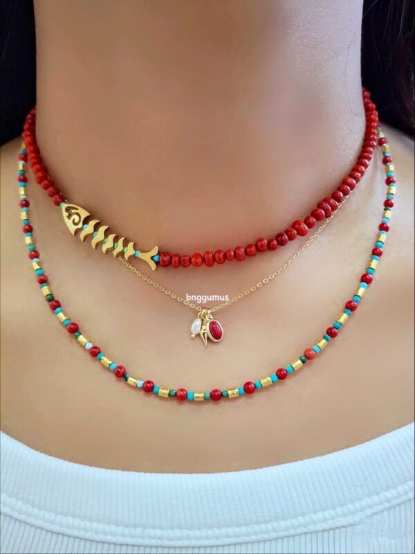 Mercan Turkuaz Taşlı Kolye